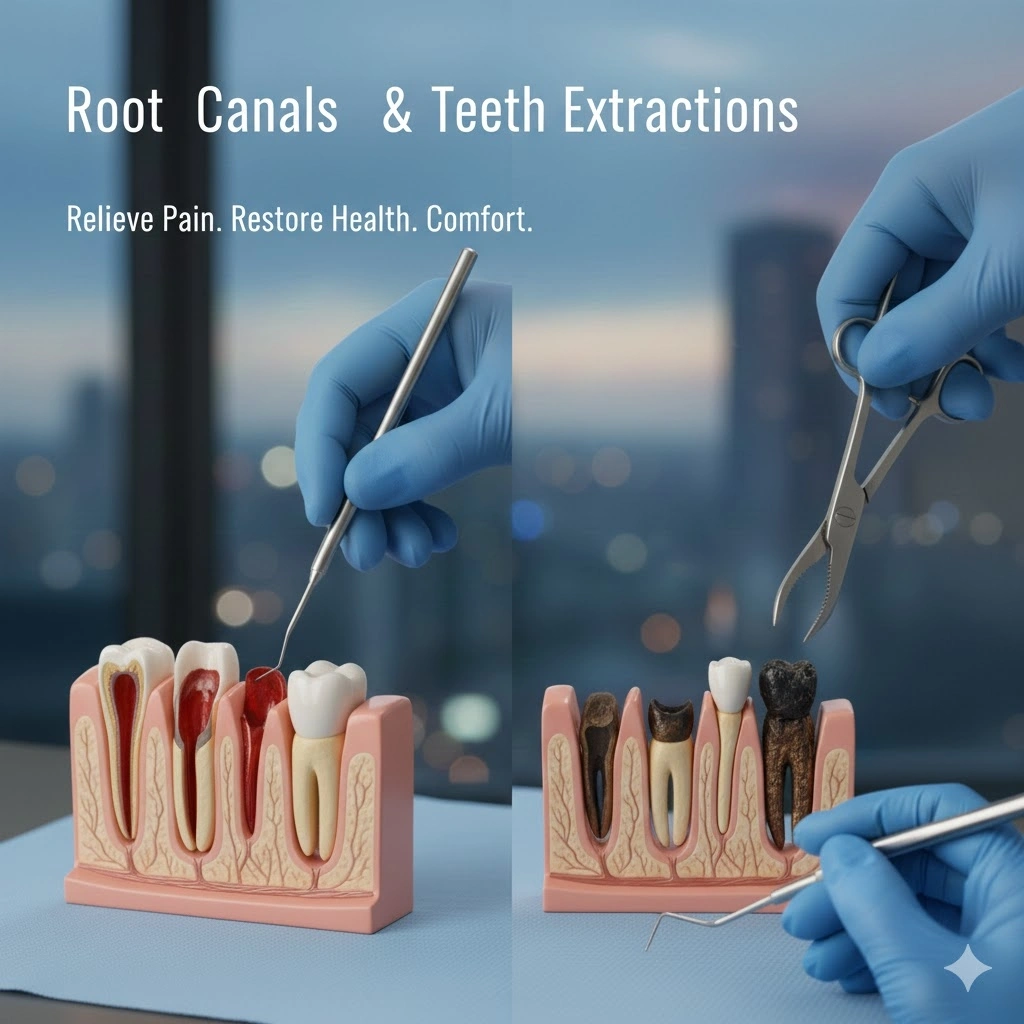 Our clinic provides gentle and effective root canal therapy and extractions to restore oral health and maintain patient comfort throughout the procedure.